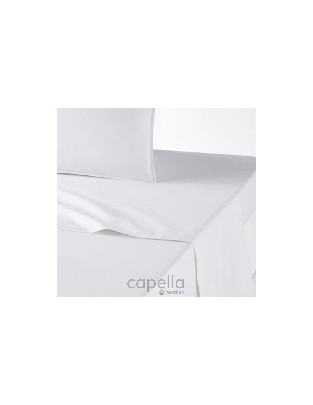 Sábana encimera de color blanco de nuestra marca CHC. Composición de 60% algodón y 40% poliéster, con mayor transpiración, suavidad y resistencia.